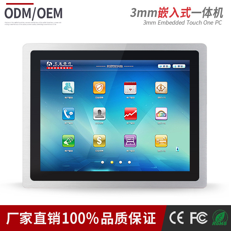 ? ? ? 智能工業(yè)平板一體機外殼采用鋁合金材料,鑄模沖壓,陽極氧化,拉絲工藝制作而成,致使面框厚度達到3mm,面板無縫隙純平顯示設(shè)計達到IP65要求;內(nèi)部集成X8架構(gòu)Intel Baytrail平臺工控主板(自主開發(fā))、固態(tài)硬盤內(nèi)存、工業(yè)高清液晶屏及十點電容觸摸屏等主要部件,它具有精美輕巧,防塵防水,堅固耐用、安全穩(wěn)定,操作方便等特點。