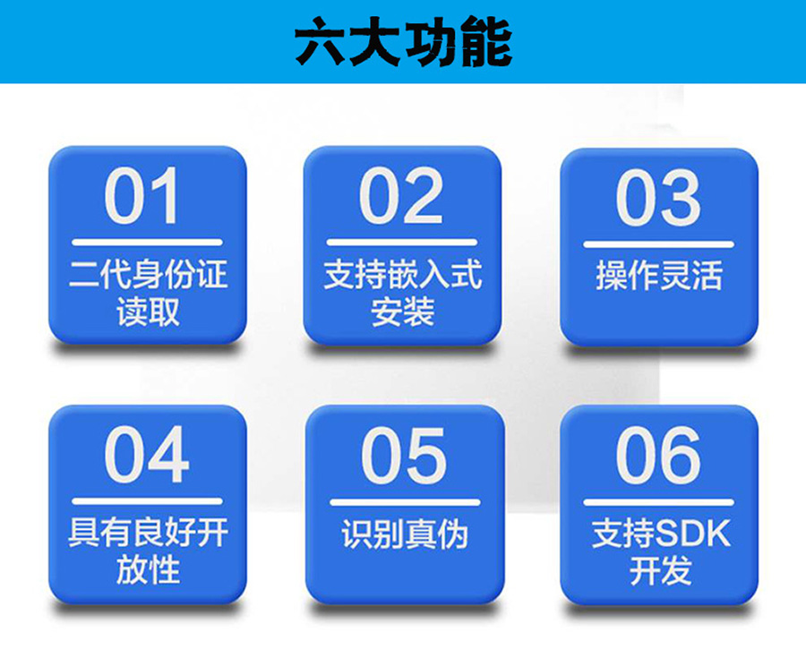 產(chǎn)品符合《GA450-2013臺式居民身份證閱讀器通用技術(shù)要求》、《GA467-2013居民身份證驗(yàn)證安全控制模塊接口技術(shù)規(guī)范》,采用國際上先進(jìn)的Type A、Type B非接觸IC卡閱讀技術(shù),通過內(nèi)嵌的專用身份證安全控制模塊(SAM)以無線傳輸方式與第二三代居民身份證內(nèi)的專用芯片進(jìn)行安全核驗(yàn)認(rèn)證后,將芯片內(nèi)的個人信息資料解讀和對應(yīng)輸出,再通過計算機(jī)接口和安裝在計算機(jī)中的身份證讀卡器的軟件,將此信息上傳至計算機(jī)。通過計算機(jī)已安裝的閱讀軟件,將信息解碼成文字?jǐn)?shù)據(jù)和相片顯示、提示和存儲在計算機(jī)上,具有閱讀身份證信息、驗(yàn)證身份證真?zhèn)蔚裙δ堋?