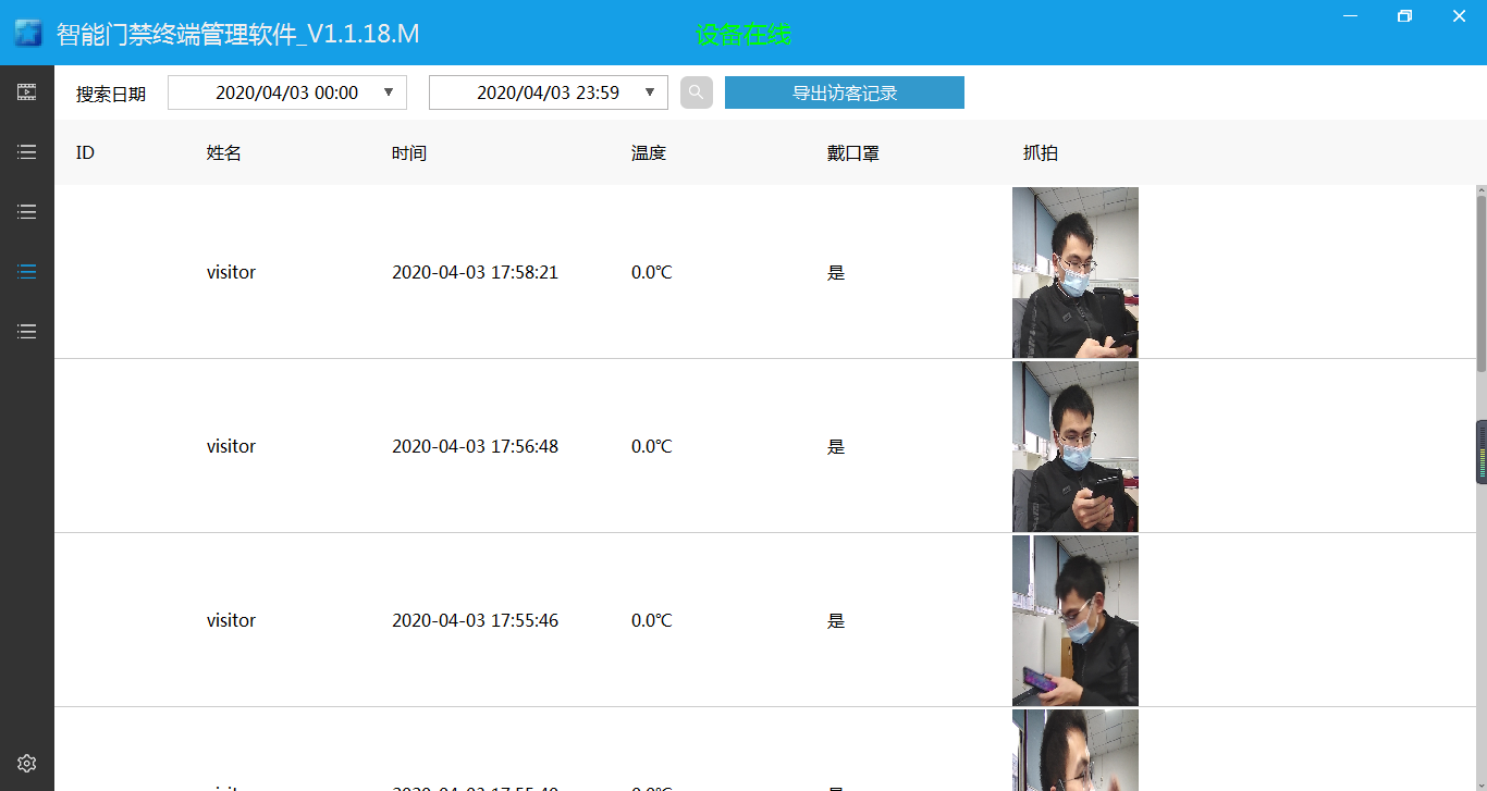點擊【訪客記錄】,進入界面è選擇搜索起始和結(jié)束時間è點擊【