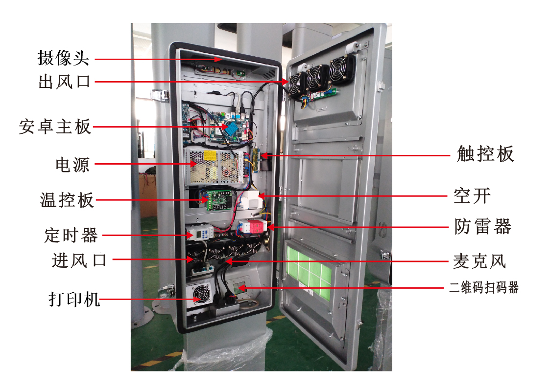 l? 內(nèi)部結(jié)構(gòu)按要求設(shè)計(jì)進(jìn)行加強(qiáng)筋加固,整機(jī)結(jié)構(gòu)牢固性可抗12級(jí)臺(tái)風(fēng),機(jī)器材質(zhì)采用冷軋板,噴漆工藝采用雙層噴戶外粉,外觀采用新穎設(shè)計(jì),可定制外觀,機(jī)器固定采用壁掛和落地式二用安裝方式,分別采取前開(kāi)門(mén)和后開(kāi)門(mén)進(jìn)行維護(hù)設(shè)計(jì)。
