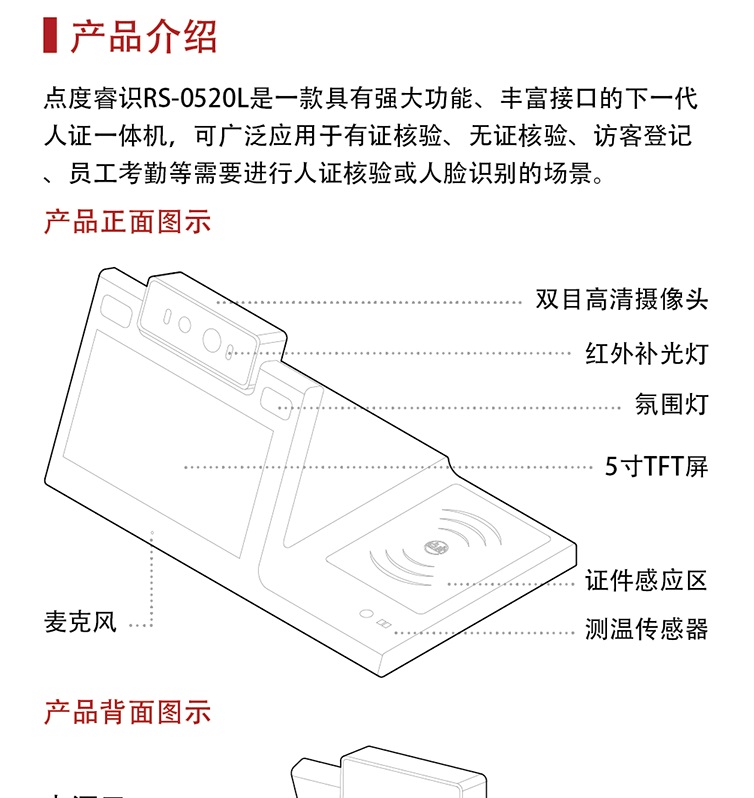 產(chǎn)品名稱:5寸人證比對測溫一體 產(chǎn)品型號:RS-0520L