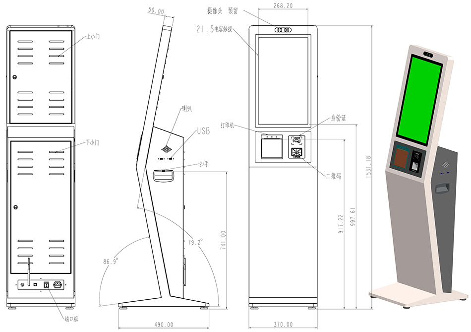 21.5寸多功能一體采用鈑金外殼,表面烤漆工藝,外觀精致;結(jié)構(gòu)設(shè)計合理,易操作,方便維護(hù),主要集成21.5寸觸摸一體屏,雙目攝像頭,身份證閱讀器,IC卡讀器,打印機(jī),條碼掃描等模塊,產(chǎn)品支持功能定制及結(jié)構(gòu)外觀設(shè)計;多功能一體機(jī)可用于各種場景做為訪客登記系統(tǒng),人證比對系統(tǒng),排隊叫號系統(tǒng);比如門衛(wèi),辦事大廳醫(yī)院等。為了方便代理加盟和系統(tǒng)集成商應(yīng)用,產(chǎn)品可整機(jī)和套件銷售,客戶根據(jù)需求可選安卓系統(tǒng)和WIN系統(tǒng)