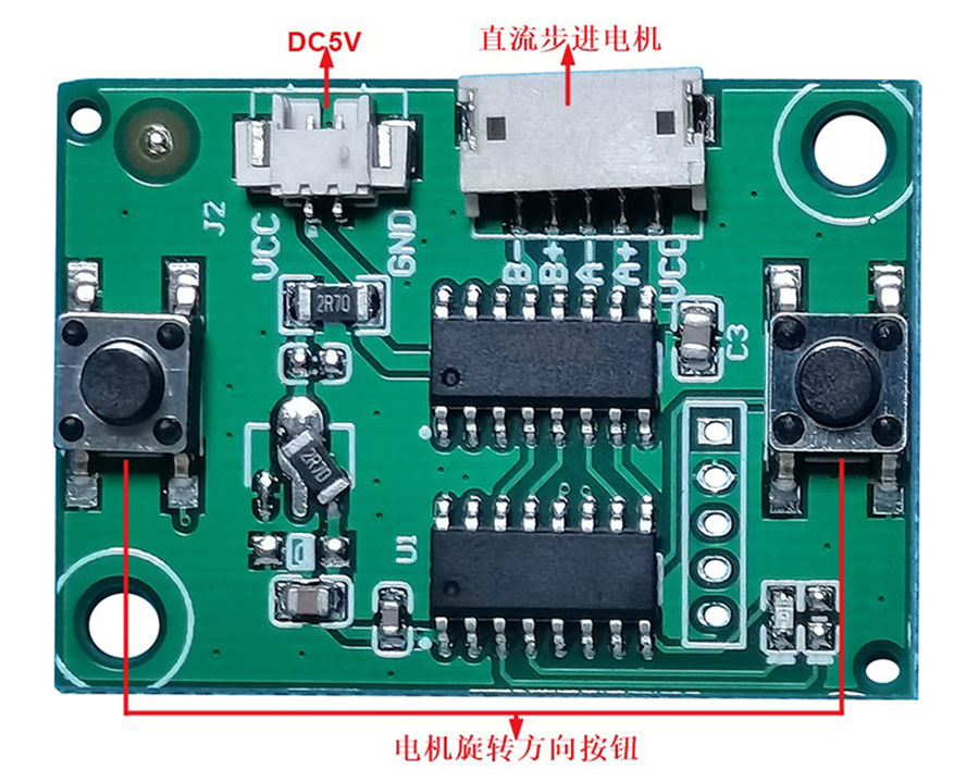 微型直流步進(jìn)電機(jī)驅(qū)動(dòng)控制板采用直流5V供電,手動(dòng)調(diào)試電機(jī)旋轉(zhuǎn)方向!我公司開(kāi)發(fā)此電機(jī)驅(qū)動(dòng)控制主要用在終端機(jī)設(shè)備中,用于下上調(diào)節(jié)攝像頭拍攝高度;同時(shí)用于其它可以旋轉(zhuǎn)的電子設(shè)備當(dāng)中。