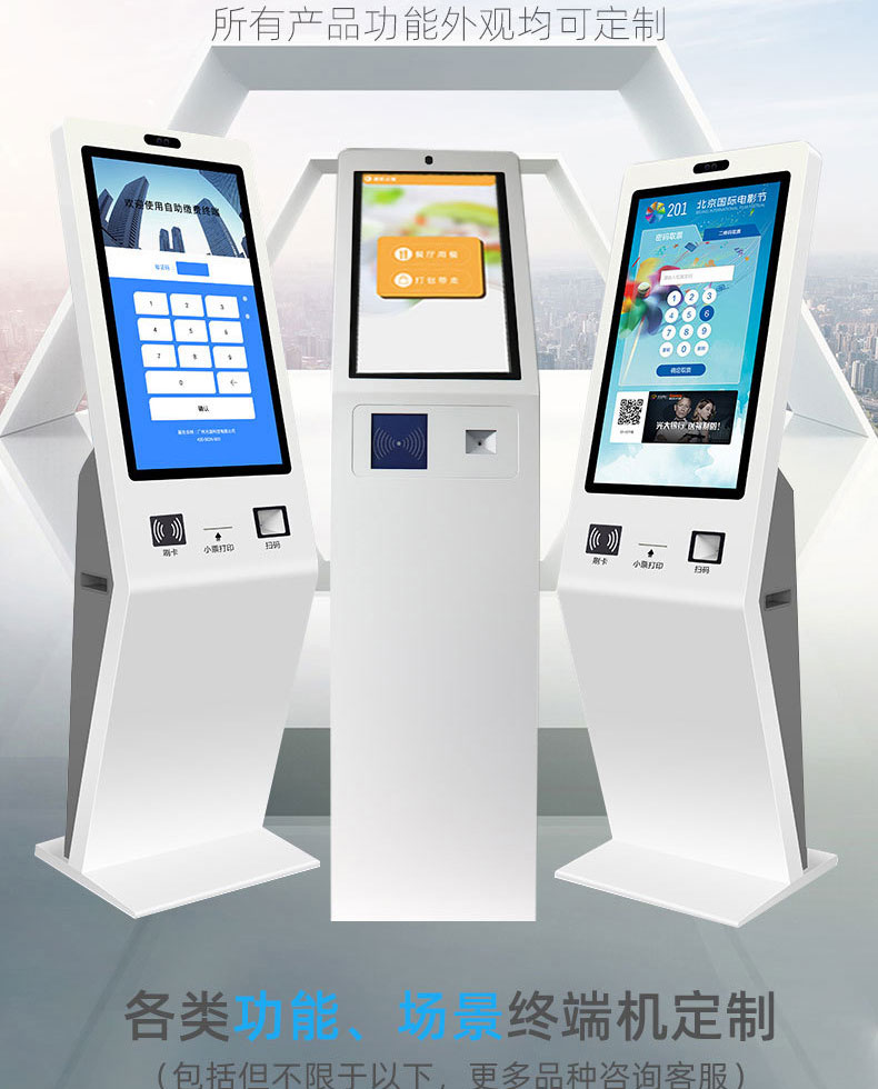 擁有專業(yè)的生產(chǎn)線,嚴(yán)格的質(zhì)量把控。耐心的咨詢服務(wù)團(tuán)隊(duì)及專業(yè)的技術(shù)負(fù)責(zé)團(tuán)體。 成產(chǎn)以“誠信、團(tuán)結(jié)、務(wù)實(shí)、創(chuàng)新”的企業(yè)精神開拓市場(chǎng)、優(yōu)化產(chǎn)品細(xì)節(jié)提供舒適的自助體驗(yàn)。公司本著“誠信為本,質(zhì)量至上”的取勝之道不斷開發(fā)自助終端在各行業(yè)的應(yīng)用,打造方便快捷的一站式服務(wù)。設(shè)備圖紙?jiān)O(shè)計(jì)-數(shù)控沖壓-折彎-焊接-刮灰打磨-磨砂清洗-噴底漆-高溫烤漆-機(jī)柜部件拼裝-配件安裝-整機(jī)調(diào)試?yán)先A測(cè)試-打包發(fā)貨;制實(shí)用的自助終端設(shè)備,我們是專業(yè)。多種定制款式任意選擇,可根據(jù)需求定制外觀屏幕尺寸可選,配件數(shù)量可選,主機(jī)配置可選。