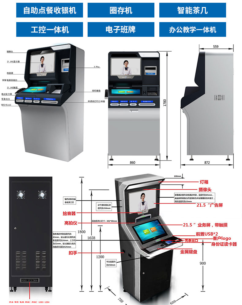 定制實(shí)用的自助終端設(shè)備,我們是專業(yè)。多種定制款式任意選擇,可根據(jù)需求定制外觀屏幕尺寸可選,配件數(shù)量可選,主機(jī)配置可選。