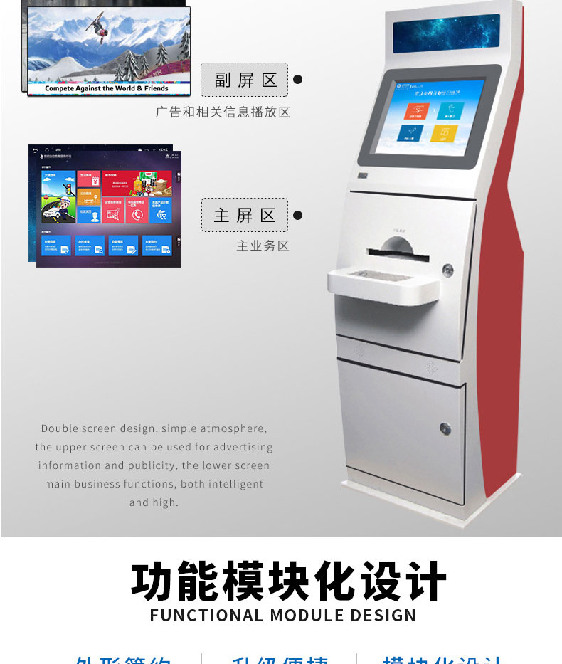 電信機關(guān)大廳雙屏觸摸一體機醫(yī)院銀行自助繳費查詢打印終端系統(tǒng)軟件開發(fā)