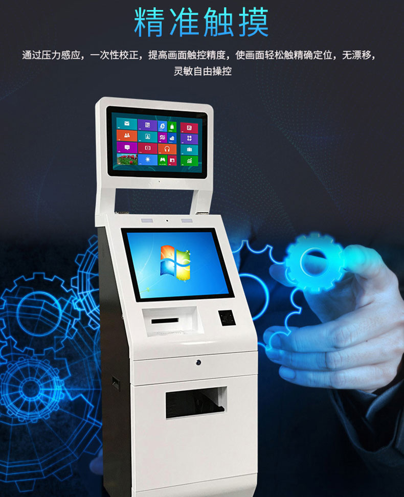 辦事大廳雙屏觸摸一體機(jī)定制人臉識別發(fā)卡打印讀卡廣告自助終端系統(tǒng)軟件開發(fā)