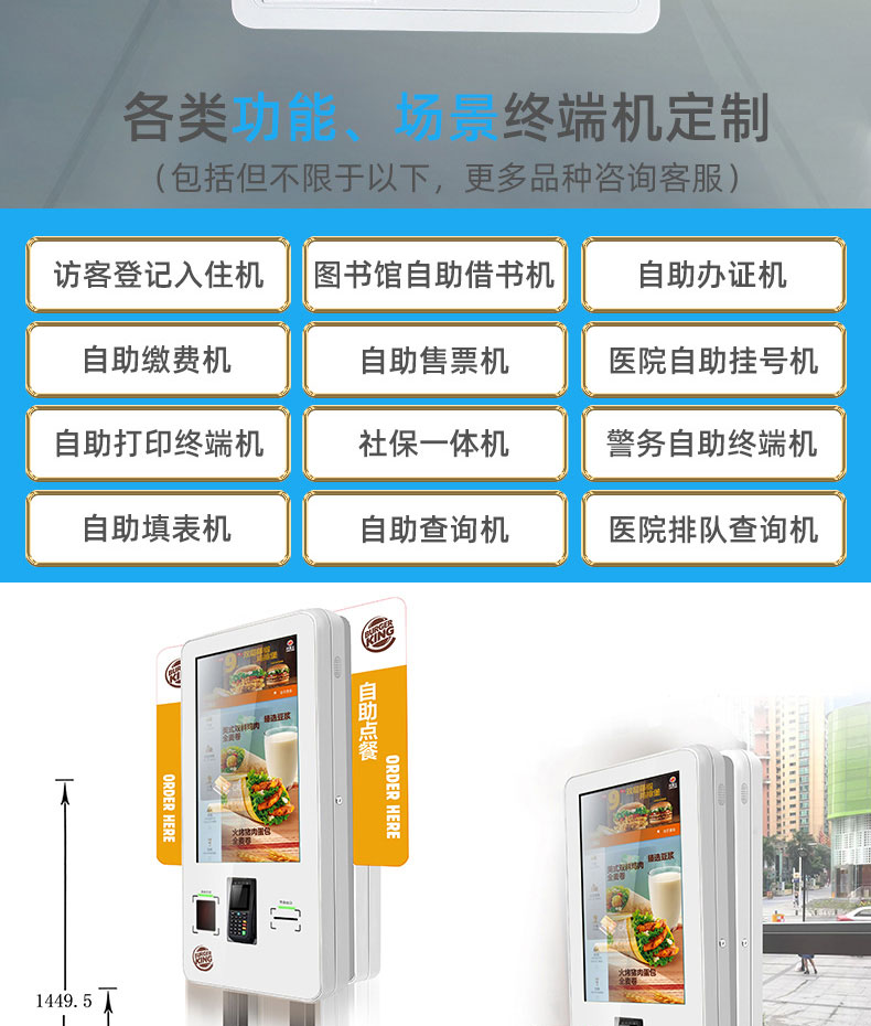 壁掛觸摸一體機醫(yī)院社保餐飲自助點餐機繳費充值智能終端系統(tǒng)軟件開發(fā)