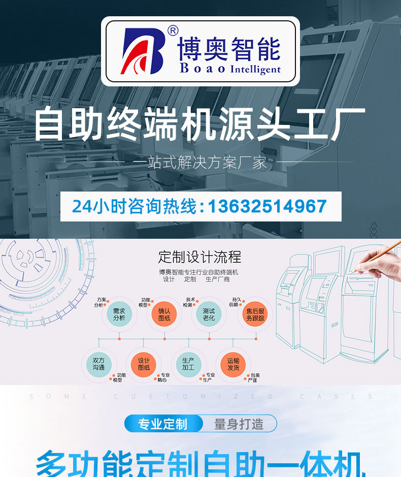 深圳市博奧智能科技有限公司專業(yè)提供自助終端機(jī)、觸摸查詢一體機(jī)、廣告機(jī)、液晶顯示器等產(chǎn)品的硬件、軟件研發(fā)與設(shè)計(jì)加工OEM/ODM等一站式服務(wù);我們一直秉承以產(chǎn)品質(zhì)量為核心、客戶至上、服務(wù)共贏為宗旨,為金融、醫(yī)療、教育、人工智能、政府工程項(xiàng)目、智慧城市、軌道交通、商業(yè)自助服務(wù)、廣告?zhèn)髅降刃袠I(yè)提供質(zhì)量過硬的產(chǎn)品和優(yōu)質(zhì)的服務(wù)。