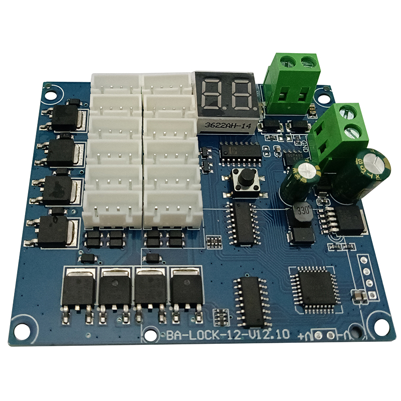 12路鎖控板是我公司專為電子柜開發(fā)的一款控制板,采用DC12V供電;管理系統(tǒng)軟件可以通過485通信控制12路電磁鎖,隨時(shí)反饋鎖狀態(tài)信號,支持一鍵全開功能和顯示鎖控地址。