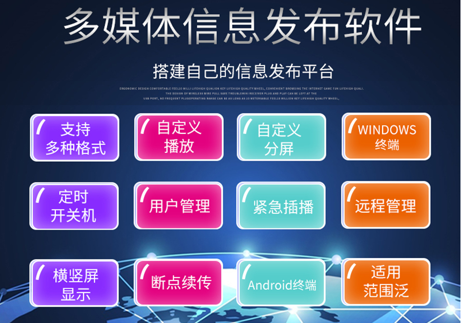 信息導(dǎo)引及發(fā)布系統(tǒng)是一個(gè)用于數(shù)字化媒體內(nèi)容發(fā)布與播放的專業(yè)系統(tǒng),該系統(tǒng)可以替代張貼海報(bào)、播放文件等舊的宣傳方式,將需要宣傳和發(fā)布的內(nèi)容以數(shù)字化的方式編輯制作,然后通過網(wǎng)絡(luò)化的方式傳輸?shù)街付ǖ慕K端設(shè)備上進(jìn)行播放,并以信息化方式進(jìn)行集中管理,以達(dá)到信息內(nèi)容的指定發(fā)布、實(shí)時(shí)更新和集中管理目的。