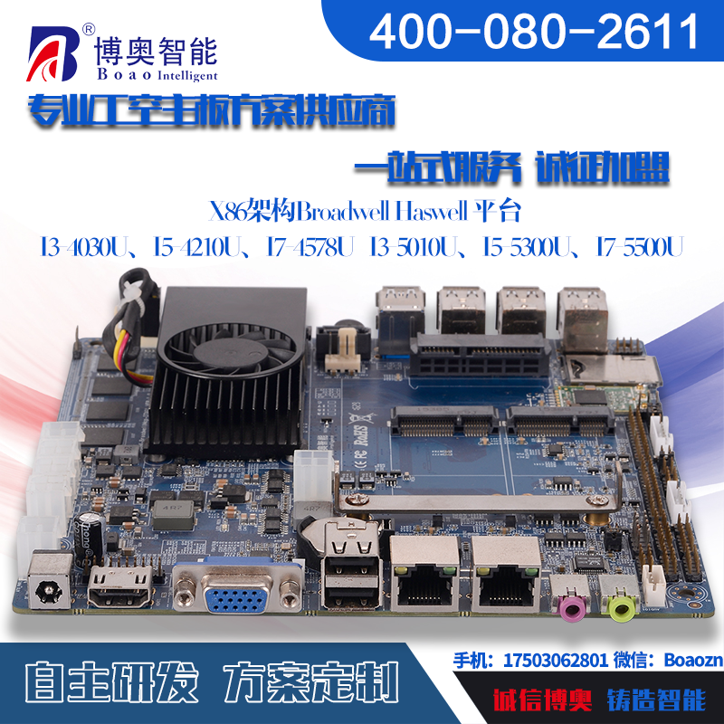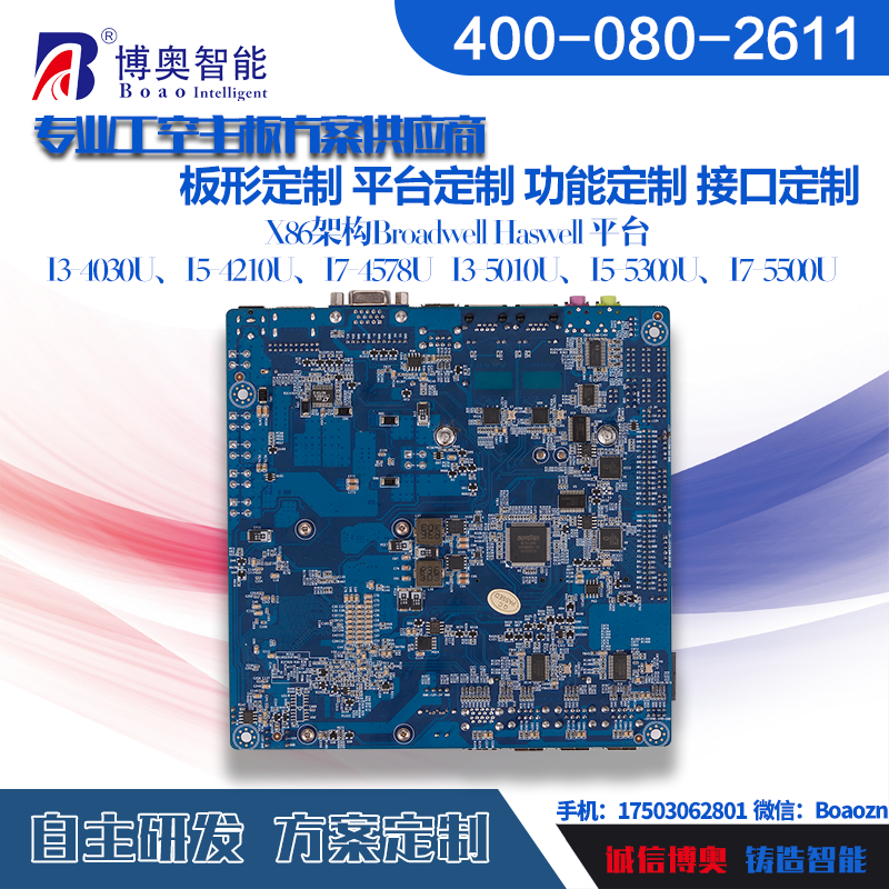 Intel Haswell和Intel Broadwell平臺主板是為我公司訪客機專用而且開發(fā)的工控主板方案,主板尺寸170mmX170mm,八層PCB板,工業(yè)級設計,它具有功能強大,集成度高,低功耗,高性能,多接口的特點,主板集成了12個USB接口 ,6個COM口,雙通大功率功放,最高支持15W,板貼4G/8G內存及WIFI+BT功能,雙插針LVDS1、LVDS2,同時主板配有兩路DC24V輸出,兩路DC12V輸出,一路DC5V輸出;?Intel Haswell和Intel Broadwell平臺提供板形(標準板卡、非標板卡)、功能接口等定制。