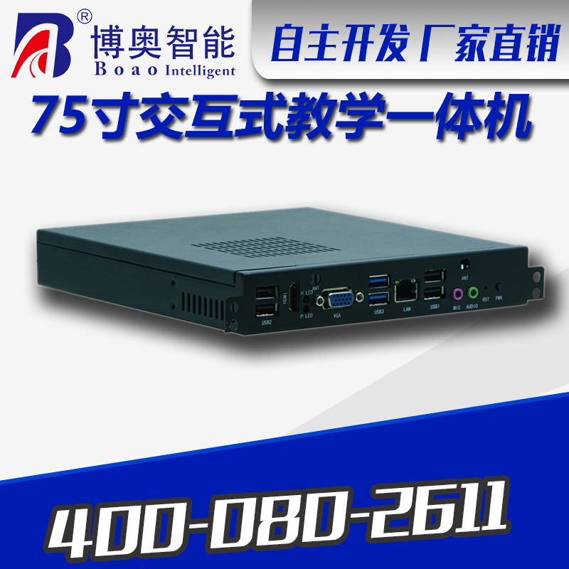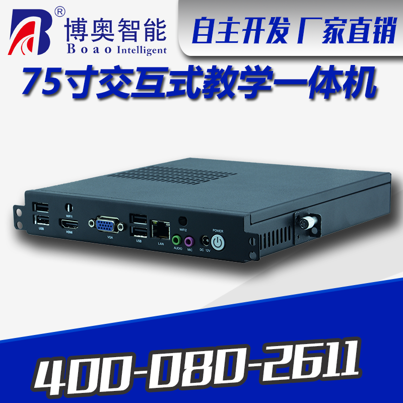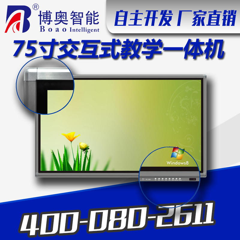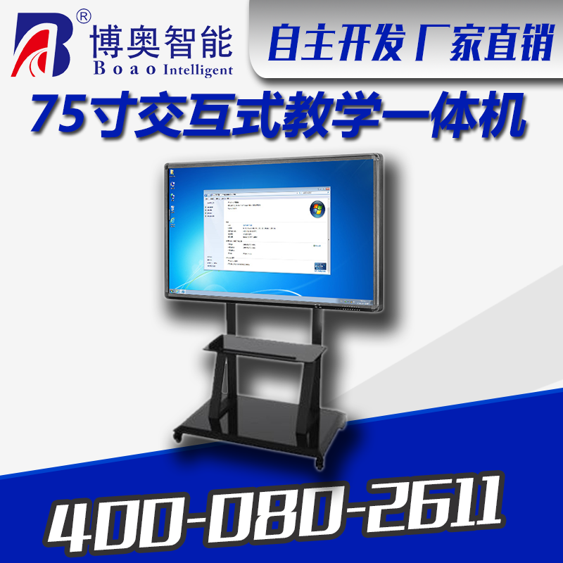 ? ? ?75寸交互式辦公教學(xué)一體機(jī)是由博奧智能自主開發(fā)生產(chǎn);采用鋁合金氧化拉絲工藝,將多點(diǎn)紅外鑰觸摸屏,LG原裝IPS 4K硬屏,高音質(zhì)喇叭、攝像頭工業(yè)控制主板集成為一臺(tái)交互式辦公教學(xué)一體機(jī),內(nèi)部安裝智能化辦公教學(xué)軟件,完全替代“投影+計(jì)算機(jī)+無線WIFI+功放音響+電子講臺(tái)+電視機(jī)+高清視頻展臺(tái)(廣告機(jī))”等分體式傳統(tǒng)復(fù)雜辦公教學(xué)設(shè)備,,將傳統(tǒng)的顯示終端提升為功能全面的人機(jī)交互設(shè)備,設(shè)備性能穩(wěn)定,安裝方便,操作簡單;通過此產(chǎn)品用戶可以實(shí)現(xiàn)書寫、批注、繪畫、多媒體娛樂以及電腦操作,直接打開設(shè)備即可輕松演繹精彩的互動(dòng)平臺(tái) ;由于交互式辦公教學(xué)一體機(jī)方案技術(shù)是博奧智能自主開發(fā)開生,提供配置、功能、尺寸等要求進(jìn)行定制。