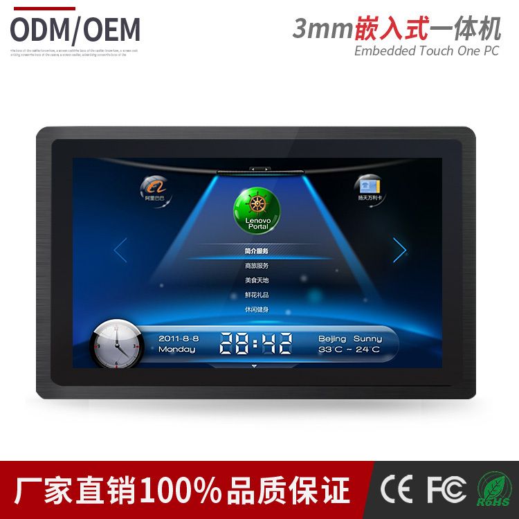 嵌入式工業(yè)平板電腦外殼采用鋁合金材料,鑄模沖壓,陽(yáng)極氧化,拉絲工藝制作而成,致使面框厚度達(dá)到3mm,面板無(wú)縫隙純平顯示設(shè)計(jì)達(dá)到IP65要求;內(nèi)部集成X8架構(gòu)Intel Baytrail平臺(tái)工控主板(自主開(kāi)發(fā))、固態(tài)硬盤(pán)內(nèi)存、工業(yè)高清液晶屏及十點(diǎn)電容觸摸屏等主要部件,它具有精美輕巧,防塵防水,堅(jiān)固耐用、安全穩(wěn)定,操作方便等特點(diǎn)。