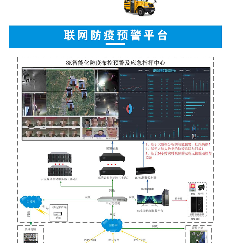 支持有線網(wǎng)絡(luò)/WIFI/4G聯(lián)網(wǎng)到防疫指揮中心平臺及第三方平臺;
