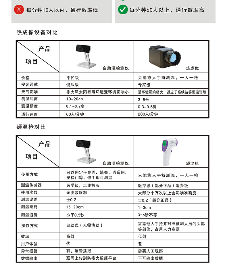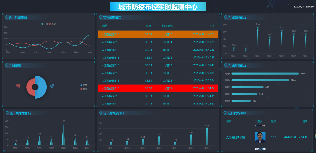 額溫槍最大的問題就是人手一槍,如果真的檢測到有確診人員,持槍人員被再次感染的可能性是相當(dāng)大的,一旦成為無癥狀感染者,就可能影響一個小區(qū),一個學(xué)校的大部分人員,成為超級傳播者。我們采用定點,或是移動的自助測溫點,測溫的過程不需要由安檢人員近距離接觸,只需要遠(yuǎn)遠(yuǎn)的在15-30米范圍表示關(guān)注即可,只有出現(xiàn)異常人員現(xiàn)場進(jìn)行處理就好了。