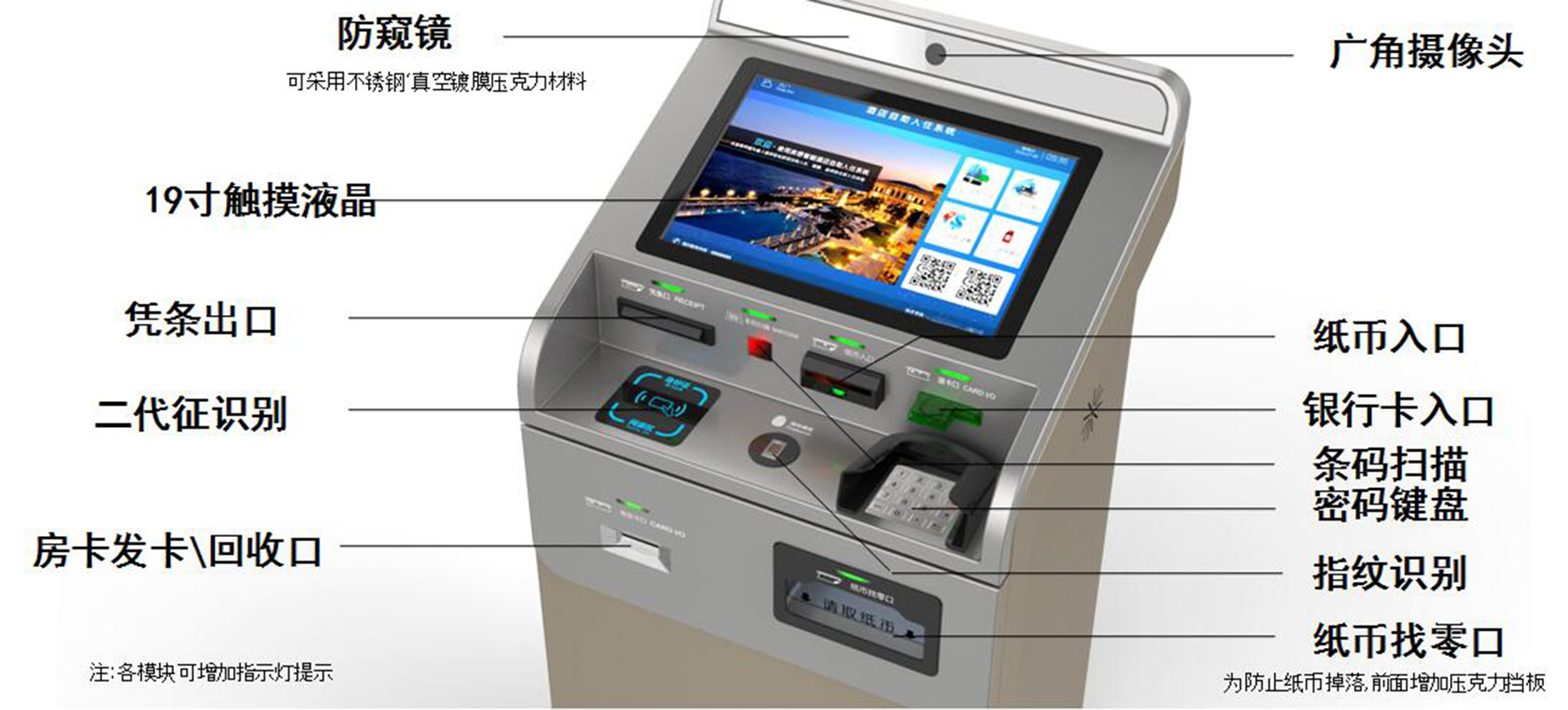 ? ? ? ?酒店自助入住機(jī)是一種無人值守、操作簡單、查詢方便快捷的人機(jī)交互設(shè)備。?客人可以通過自助入住設(shè)備自助開房,退房,結(jié)賬離店。達(dá)到提高顧客辦事效率、節(jié)約時(shí)間,時(shí)間節(jié)約酒店運(yùn)營成本、提高服務(wù)質(zhì)量的目的。其具有服務(wù)完整性、可視性、系統(tǒng)化和可維護(hù)性,是酒店自動化處理業(yè)務(wù)的有效保證
