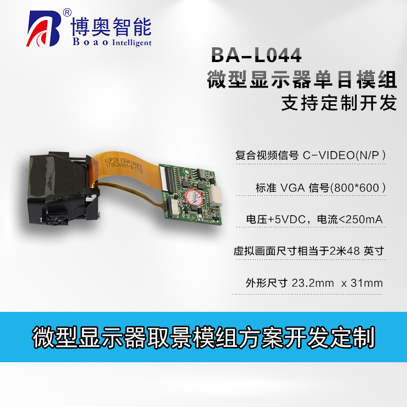 ? ? ? ?該顯示微型顯示器模組為減少客戶開發(fā)周期,降低客戶開發(fā)楊本應(yīng)運而生,模組含1個SVGA像素的微? ?型顯示芯片、光源系統(tǒng)、高性能光學(xué)引擎、以及圖像驅(qū)動控制電路。該顯示模組可以虛擬出相當(dāng)于2米? ?遠(yuǎn)48英寸的畫面,圖像清晰800*600像素,體積小巧,可以方便地應(yīng)用到客戶的產(chǎn)品開發(fā)設(shè)計中,該模? ?組主要設(shè)計應(yīng)用到:軍用頭盔顯示器,軍用顯示器套件、便攜式夜視儀、醫(yī)療設(shè)備取景、紅外熱成像儀取景,激光瞄準(zhǔn)器成像、單兵夜視系統(tǒng)、游戲頭盔、智能機器人取景、計算計成像、遠(yuǎn)程教育、FPV眼鏡、AV/VR眼鏡等。