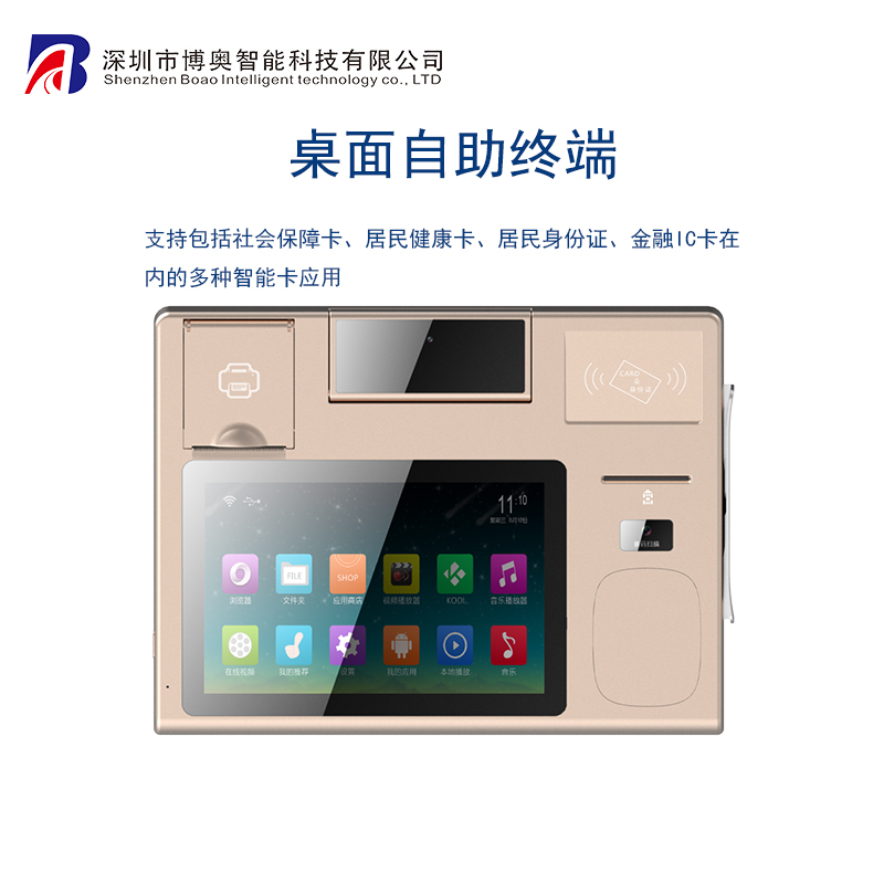 桌面自助終端,是一咱安桌電腦結(jié)算一體機(jī),具有"互聯(lián)網(wǎng)+"金融交易功能,作為面向互聯(lián)網(wǎng)行業(yè)應(yīng)用的一體化設(shè)備,結(jié)合了身份認(rèn)證、生物信息采集、網(wǎng)絡(luò)通信和移動(dòng)應(yīng)用在內(nèi)的多種技術(shù),支持包括社會(huì)保障卡、居民健康卡、居民身份證、金融IC卡在內(nèi)的多種智能卡應(yīng)用,可在政務(wù)多業(yè)務(wù)、集成服務(wù)、醫(yī)院、藥店、基層公共社區(qū)、便利店配備,與互聯(lián)網(wǎng)平臺(tái)相配合,線上線下、有卡無卡相結(jié)合。便民得民的一體代自助服務(wù)高端設(shè)備。
