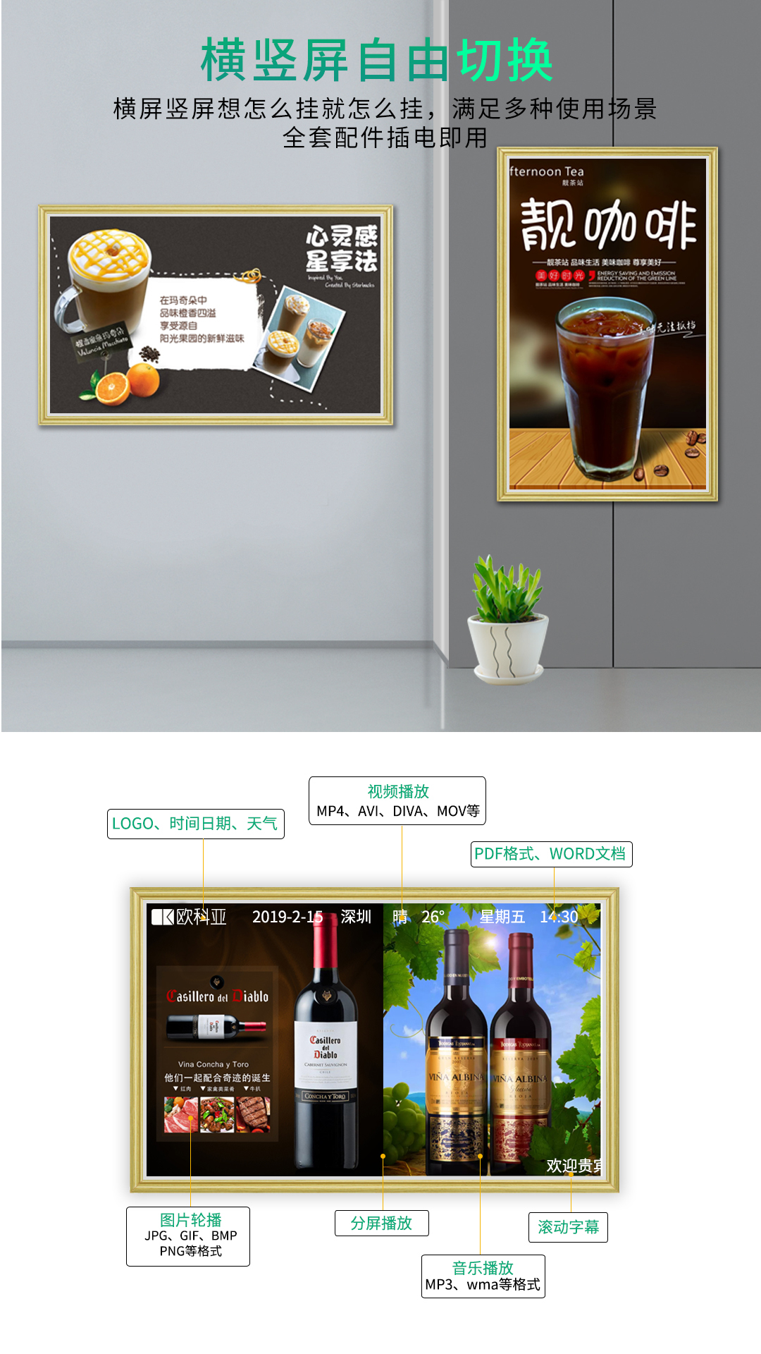 產(chǎn)品名稱:壁掛畫框廣告機(jī)