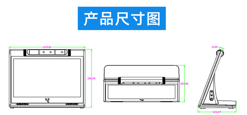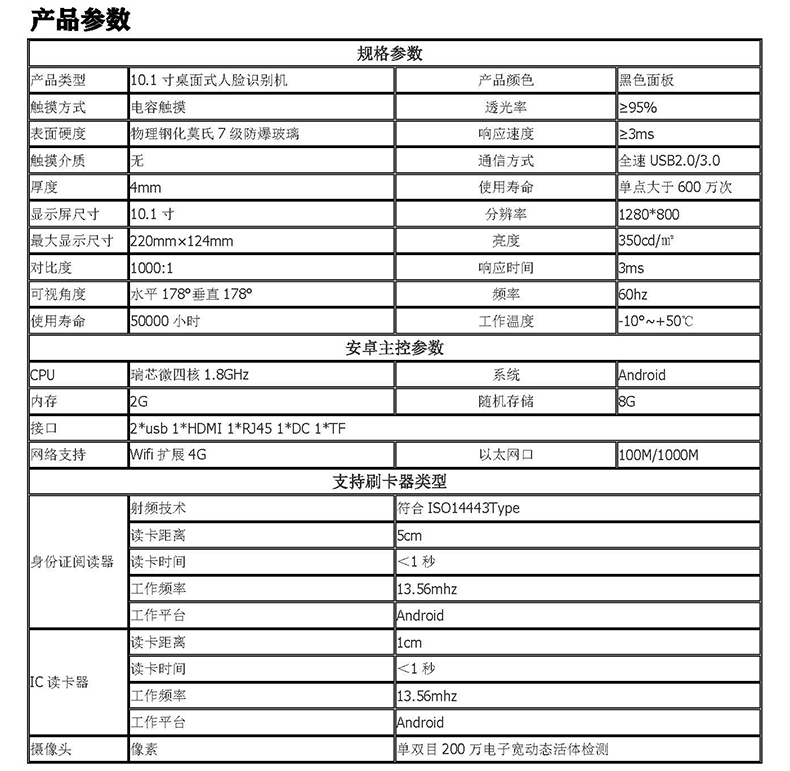 功能配置:身份證讀卡器 IC卡讀寫器 200萬雙目攝像頭