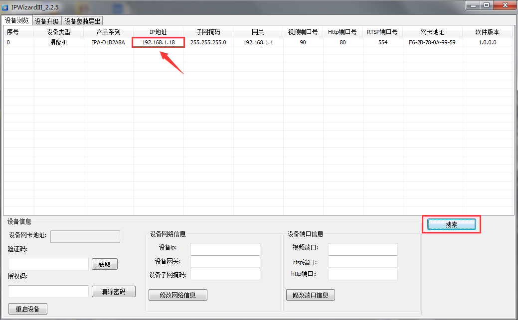 通過網(wǎng)線將設(shè)備正確連接到PC電腦;設(shè)備上電后,在電腦打開搜索工具,搜索設(shè)備IP地址。同時也可通過工具修改設(shè)備IP地址。