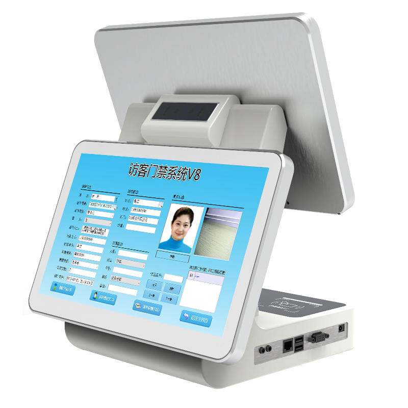 BA-FK13A訪客機(jī)是博奧智能針對(duì)政府機(jī)關(guān)、軍隊(duì)、公安、法院、學(xué)校、事業(yè)單位、花園小區(qū)、高檔寫字樓、工廠等門衛(wèi)傳達(dá)室設(shè)計(jì)加工的一款進(jìn)出人員信息化登記設(shè)備, 從而代替了傳統(tǒng)的手工登記,有效的提高了門衛(wèi)管理工作效率及證件信息登記準(zhǔn)確性, 為日后的信息查詢工作更方便量更快捷。整機(jī)采用流線性設(shè)計(jì),符合人體工程原理,結(jié)構(gòu)合理,外形美觀大方,操作簡單,維護(hù)方便;內(nèi)部采用模塊化設(shè)計(jì),集成13.3寸電容觸顯一體屏和13.3寸液晶屏、身份證閱讀器,IC卡讀寫器、雙目寬動(dòng)態(tài)高清攝像頭、條碼掃描儀、熱敏打印機(jī)及熱成像測(cè)溫等模塊。