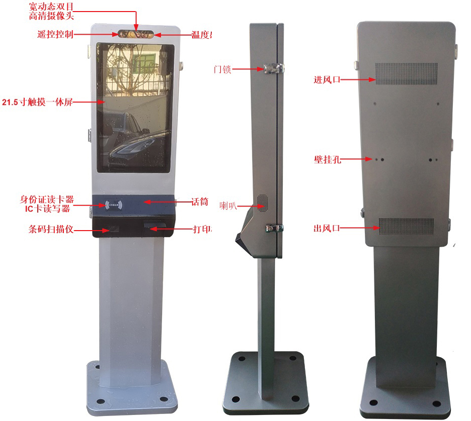 21.5寸室外多功能戶外一體機(jī)安裝方式支持壁掛和落地(立式)兩種方式,集成21.5寸高清液晶屏和室外專(zhuān)用電容觸摸屏;寬動(dòng)態(tài)雙目攝像頭 ;身份證和IC卡讀卡器;熱敏打印機(jī);條碼掃描,RK3399工業(yè)主板等模塊。