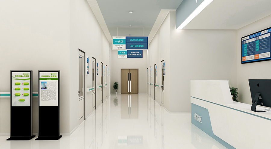 電梯廳、樓道口主要使用落地式一體機(jī)或壁掛式一體機(jī),可顯示樓層指引、醫(yī)院通知等信息。