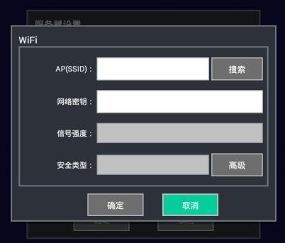 WiFi配置如下面圖片所示,可通過WiFi配置界面的搜索按鈕打開手動搜索界面,通過刷新按鈕更新無線AP列表,并在搜索結(jié)果列表中選擇合適的AP名稱(AP名稱也可以自行手動直接輸入),同時輸入相應(yīng)的網(wǎng)絡(luò)密鑰即可完成WiFi的設(shè)置。如果某些AP不支持DHCP動態(tài)分配IP地址或者網(wǎng)絡(luò)環(huán)境不允許使用動態(tài)IP地址,則可通過高級按鈕進(jìn)入手動設(shè)置IP地址界面(設(shè)置界面完全類似以太網(wǎng)的手動設(shè)置IP地址界面)。