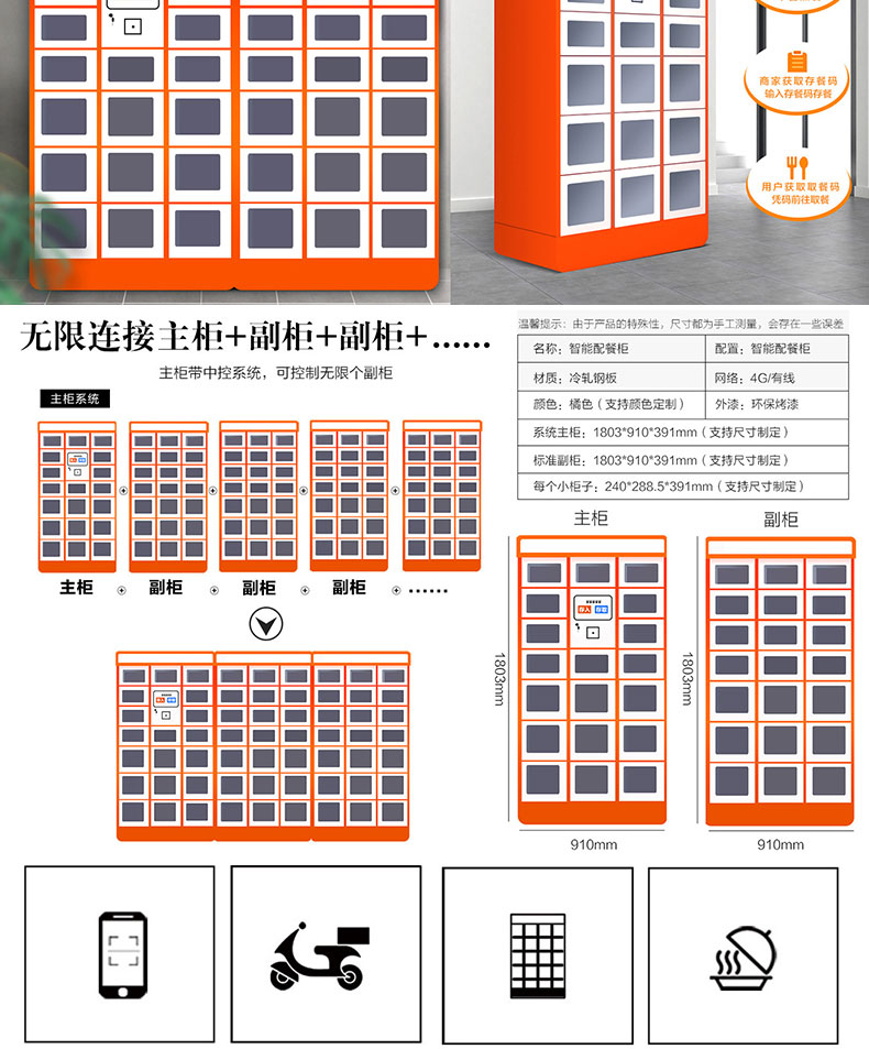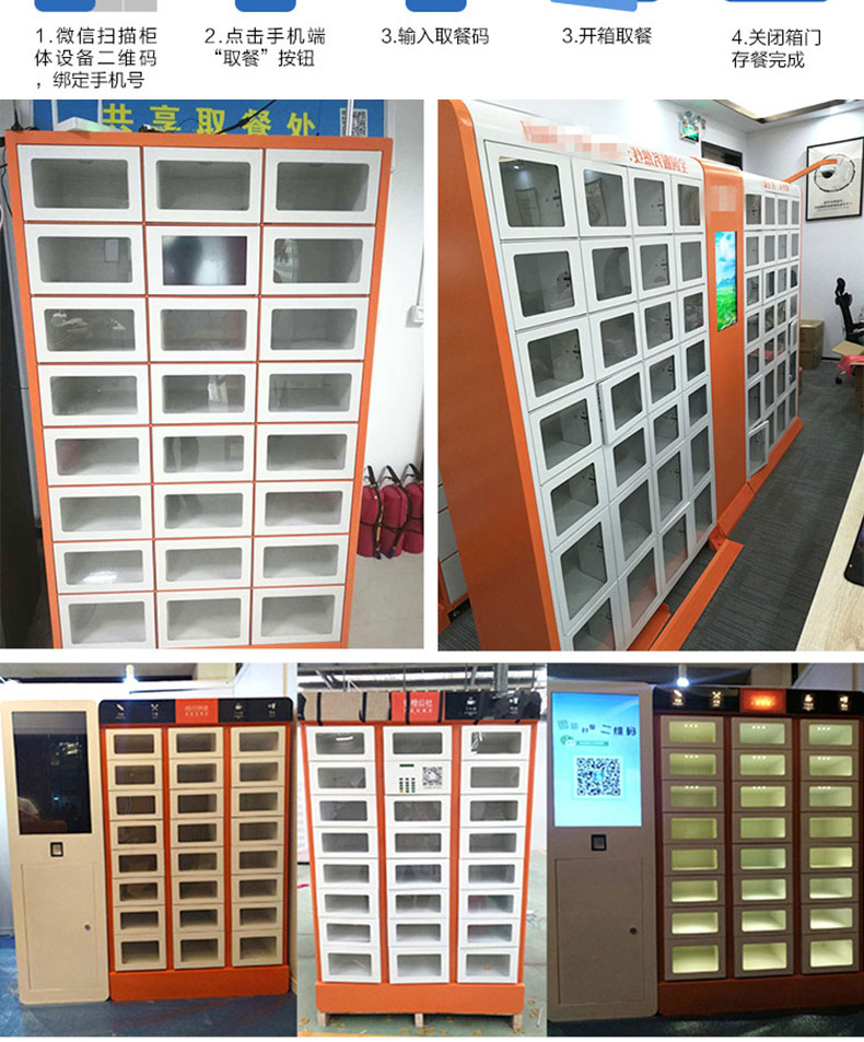 本產(chǎn)品應(yīng)用于外賣、團(tuán)餐配送、自動(dòng)售賣等場(chǎng)景,配送人員將餐放入柜中,顧客收到取餐提示,根據(jù)自己時(shí)間取餐。柜體可實(shí)現(xiàn)單獨(dú)獨(dú)立加熱保溫、消毒、照明等功能,不用擔(dān)心餐變涼及安全問(wèn)題,解決配送,分餐配送、分餐困難、用戶體驗(yàn)差得問(wèn)題。