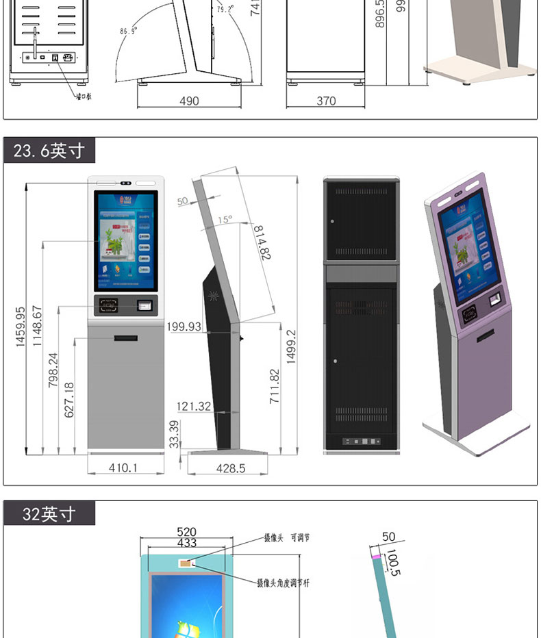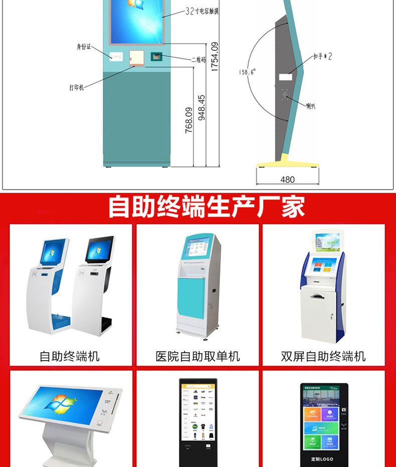自助終端機定制:定制各種場景各種款式非標終端機;例如訪客機、景區(qū)自助取票機、醫(yī)院繳費查詢機、醫(yī)院自助取單機、社保查詢機、室內(nèi)外廣告機、排隊叫號機、工控一體機、電力繳費查詢機、圖書自助銷售機、便攜式計算機、酒店自助入住機、自助收銀機等終端。