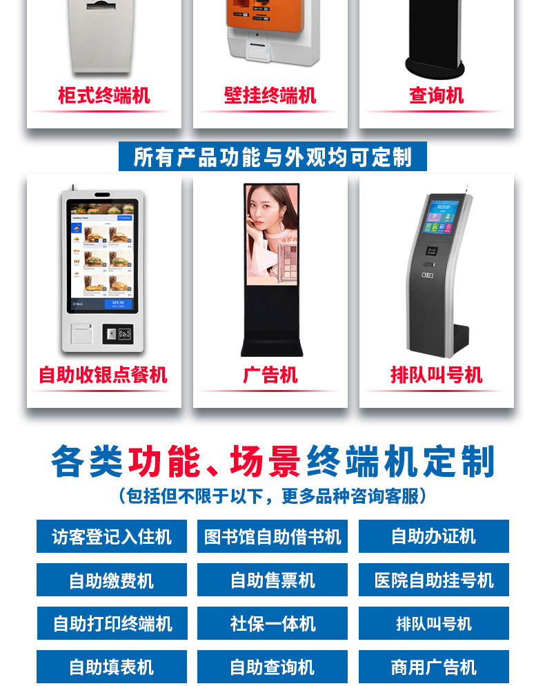 定制實(shí)用的自助終端設(shè)備,我們是專業(yè)。多種定制款式任意選擇,可根據(jù)需求定制外觀屏幕尺寸可選,配件數(shù)量可選,主機(jī)配置可選。