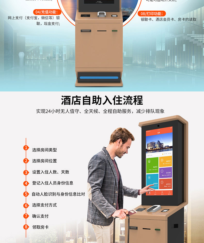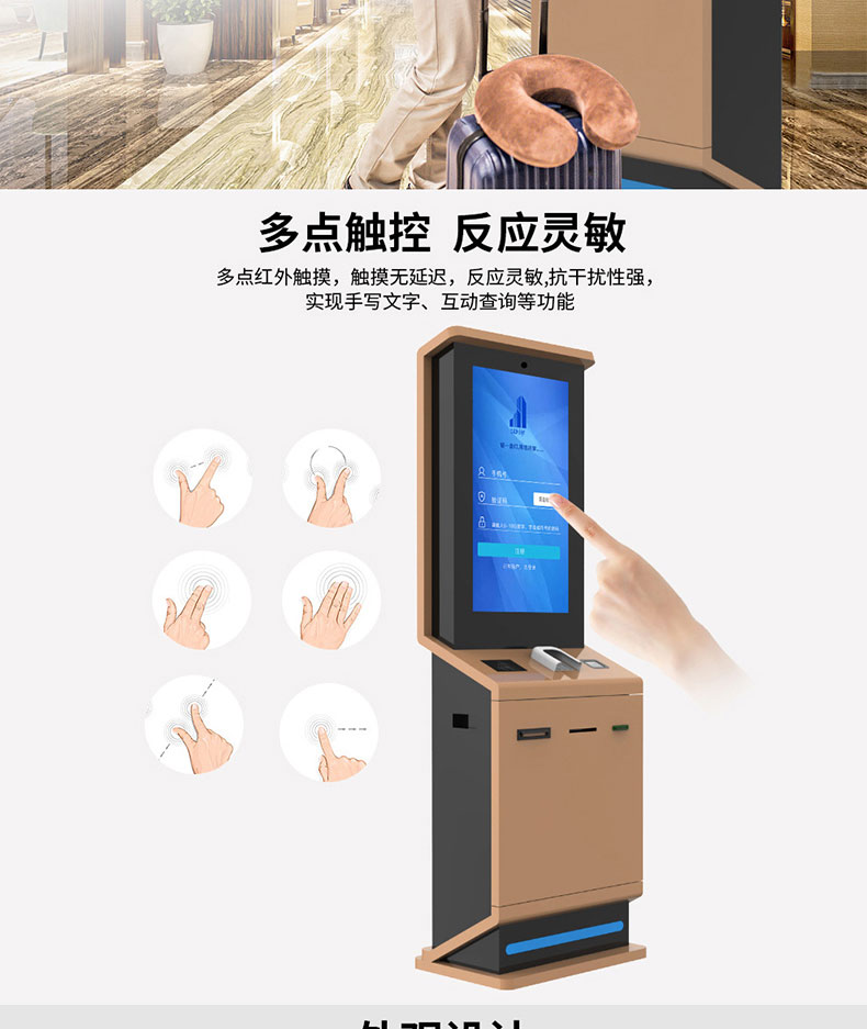 落地立式觸摸一體機(jī)證件登記人臉識(shí)別酒店自助入住智能終端系統(tǒng)軟件開(kāi)發(fā)