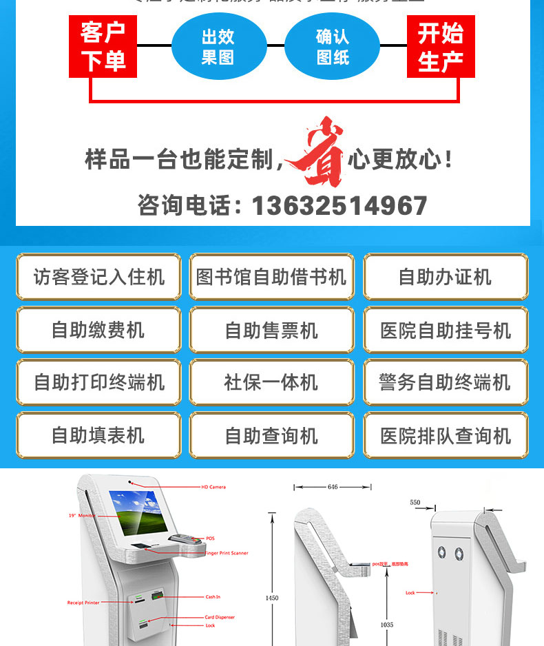 落地式查詢(xún)排隊(duì)叫號(hào)一體機(jī)讀卡小票打印智能終端應(yīng)用系統(tǒng)軟件開(kāi)發(fā)