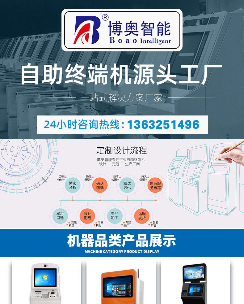 深圳市博奧智能科技有限公司專業(yè)提供自助終端機(jī)、觸摸查詢一體機(jī)、廣告機(jī)、液晶顯示器等產(chǎn)品的硬件、軟件研發(fā)與設(shè)計加工OEM/ODM等一站式服務(wù);我們一直秉承以產(chǎn)品質(zhì)量為核心、客戶至上、服務(wù)共贏為宗旨,為金融、醫(yī)療、教育、人工智能、政府工程項目、智慧城市、軌道交通、商業(yè)自助服務(wù)、廣告?zhèn)髅降刃袠I(yè)提供質(zhì)量過硬的產(chǎn)品和優(yōu)質(zhì)的服務(wù)。