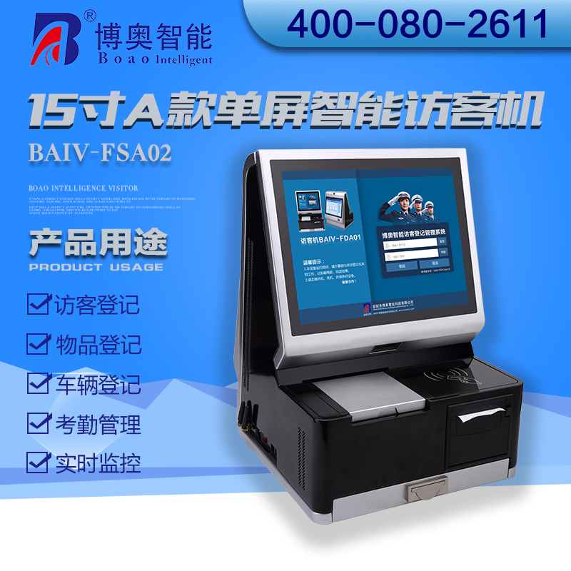 ? ? ? 15寸A款單屏智能訪客機主要用在政府機關(guān)、關(guān)口、機場、軍隊、公安、法院、學(xué)校、事業(yè)單位、花園小區(qū)、高檔寫字樓、工廠等門衛(wèi)傳達室用來訪客登記管理。
