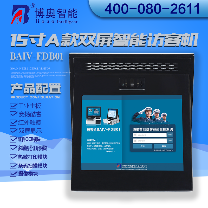 ? ? ? ?15寸B款雙屏智能訪客機主要用在政府機關(guān)、關(guān)口、機場、軍隊、公安、法院、學(xué)校、事業(yè)單位、花園小區(qū)、高檔寫字樓、工廠等門衛(wèi)傳達室用來訪客登記管理。