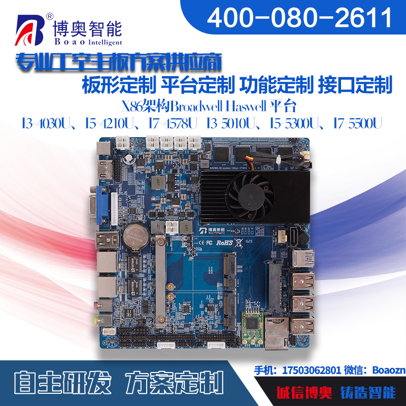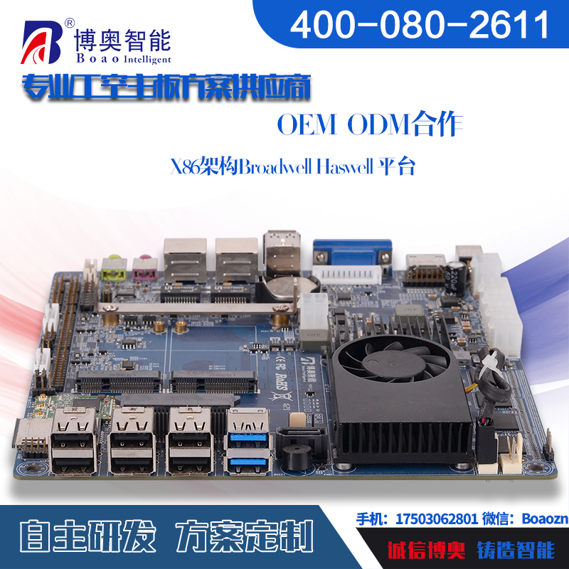 Intel Haswell和Intel Broadwell平臺主板是為我公司訪客機專用而且開發(fā)的工控主板方案,主板尺寸170mmX170mm,八層PCB板,工業(yè)級設計,它具有功能強大,集成度高,低功耗,高性能,多接口的特點,主板集成了12個USB接口 ,6個COM口,雙通大功率功放,最高支持15W,板貼4G/8G內存及WIFI+BT功能,雙插針LVDS1、LVDS2,同時主板配有兩路DC24V輸出,兩路DC12V輸出,一路DC5V輸出;?Intel Haswell和Intel Broadwell平臺提供板形(標準板卡、非標板卡)、功能接口等定制。