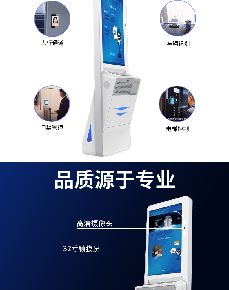 1.人證核驗(人證合一)? 2.電話撥號? 3.門禁聯(lián)動? 4.人行通道閘機? 5.電梯聯(lián)動??? 6.網(wǎng)絡(luò)攝像頭全景拍照? 7.車輛車牌識別控制系統(tǒng)? 8.訪客人車微信預(yù)約? 9.體溫檢測? 10.短信發(fā)送、確認(rèn) |
