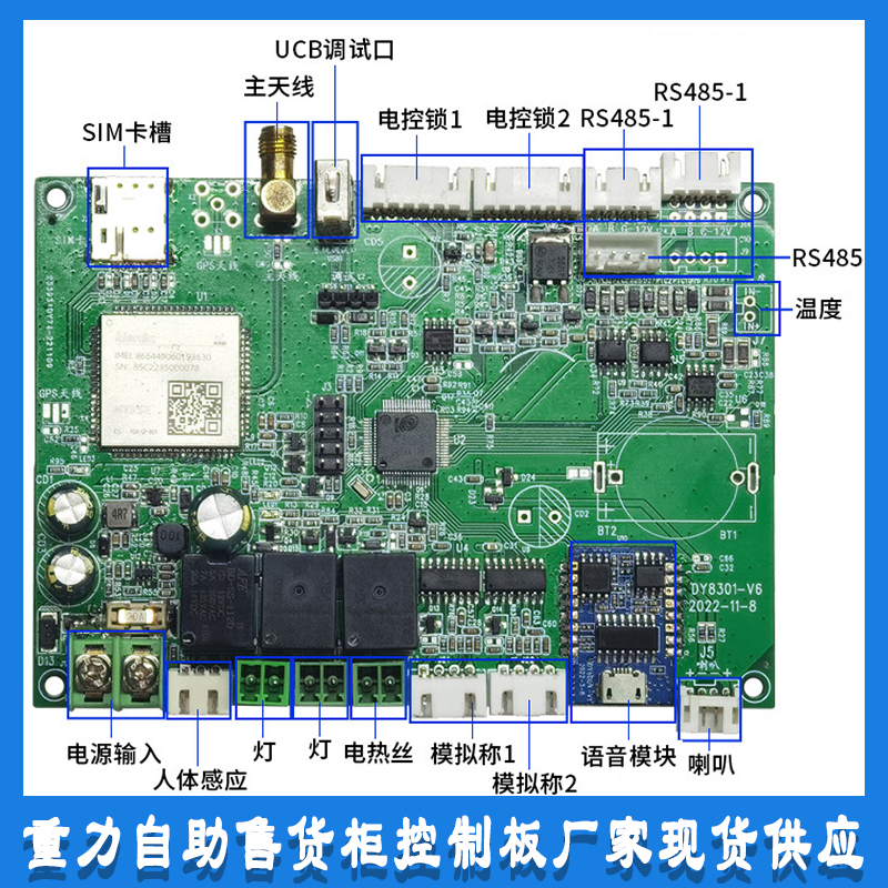 重力柜4G主控板人體感應智能語音播報售貨機免費提供開發(fā)指令集自助販賣機自動稱重控制板套件按需定制 免費開發(fā)工業(yè)控制 智能電器物聯(lián)家居主控PCBA方案硬件電路板