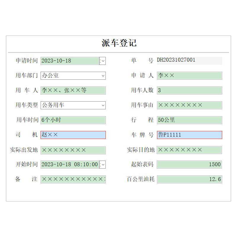2、派車管理(派車登記、交車登記);